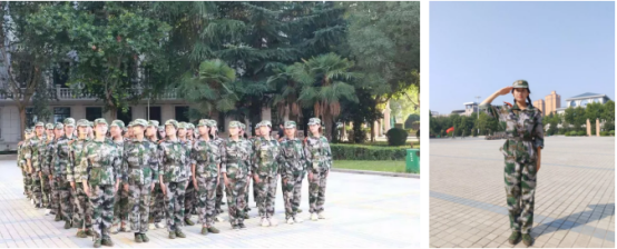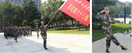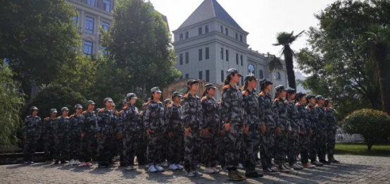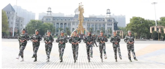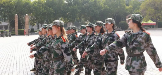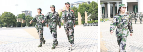 其实站军姿还挺考验人的耐力的,因为一动也不能动,就算再大的太阳,流再多的汗都不能有一刻放松,必须坚持到最后。然后我们又陆续学了稍息,跨立,蹲下与起立,停止间转法,齐步走和跑步走等等。