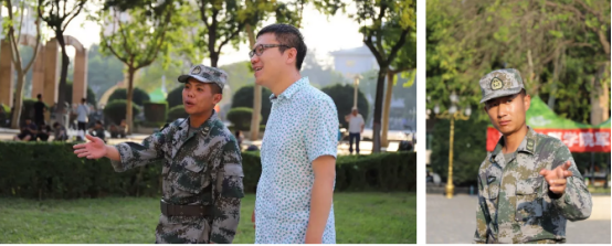 无论是教官还是员工都很热血,在训练场上每根神经都像充足了电,非常集中,我想我们会一定从军训中学到了许多东西。昨天晚上我们组织活动,此时教官就变成了我们的大哥哥,让我们唱歌,他还表演了军体拳。还记得刚开始见到教官的时候以为他是那种很厉害超级凶的教官,可以说是很意外吧,教官不凶并且很温和,对我们都很好,第一次听教官自我介绍的时候也被他所震撼,教官说零八年的抗震救灾,他也在。顿时掌声一片。
