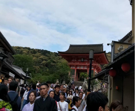 翌日,我们到访了著名的清水寺。巧的是,那周日本正处于修学旅行期间,所以能在景点看到很多初高中生们,让我产生了别样的新鲜感。