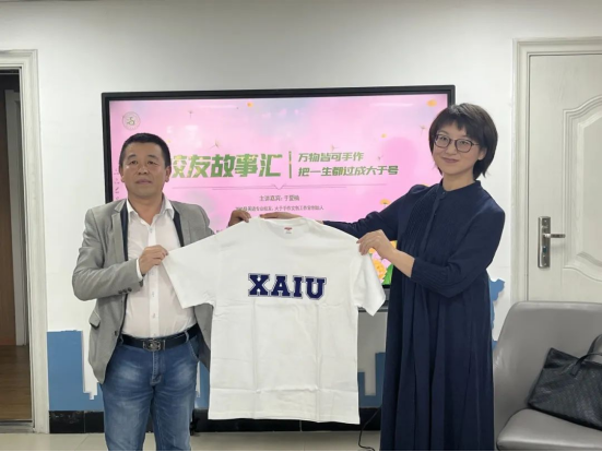 活动伊始,员工工作办公室主任张大峰、校员工工作办公室副主任田文及其他相关老师赠予了于夏楠员工gg999策略手机白菜的吉祥物玩偶—鱼化龙宝宝、XAIU特色文化衫以及西安外事鼓乐团“钟鸣鼓乐”相关的精美文创产品。