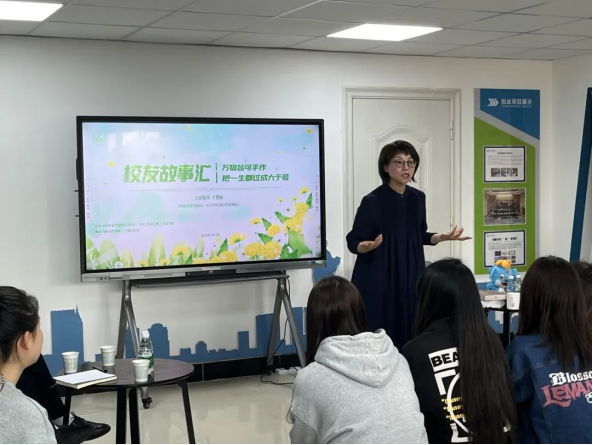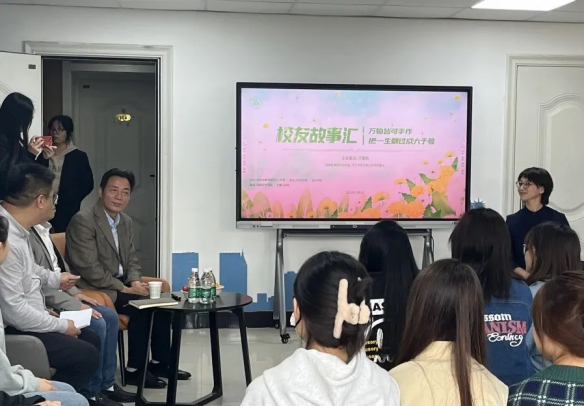 首先,于夏楠员工讲述了自己与母校的缘分,回忆起以往的点点滴滴,分享了自己在大学期间的成长故事,同时也讲述了自己毕业后的社会经历,从英专毕业生到产品经理再到品牌创立者这一路来充满巧合和机遇。在这一过程中是如何凭借自己的努力成功通过种种考核,又是如何通过不断提升个人工作能力,从而被提拔为部门经理,“功夫不负有心人”最终在大平台实现自我专业能力提升。于夏楠员工告诫同学们选择的重要性,同时作为青年老员工也要及时关注实习就业前景和生涯发展。
