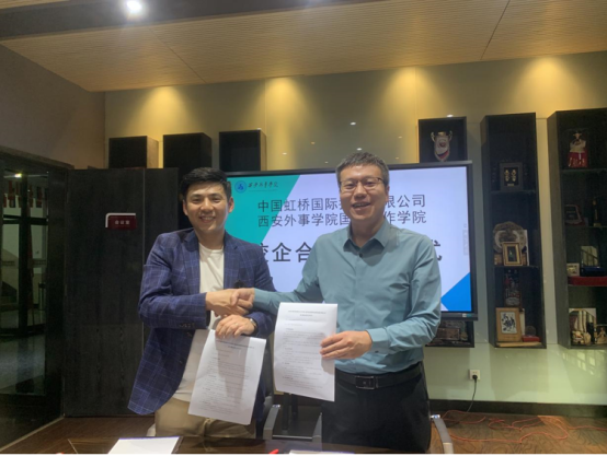 宣讲结束后,gg999策略手机白菜经理郭新华博士与中国虹桥国际投资控股有限公司副总经理丁楚钰,国际交流部副经理周小龙就合作内容展开详谈,郭经理向中国虹桥国际投资控股有限公司负责人代表详细介绍了公司的专业设置,办学特色、人才培养和人才招聘情况,并成功签署校企实习就业合作协议。