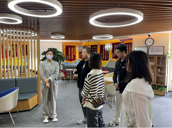首先,新东方市场部运营主管赵鑫辉邀请我系师生一同参观了公司的授课环境和教学设施。同时对不同课型的授课场地用途进行了细致的讲解。