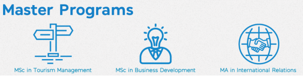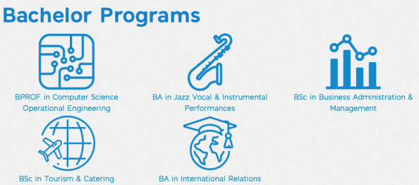 英语教学的专业:爵士声乐及乐器专业、工商管理、国际关系、旅游与餐饮业、商业业务发展(硕士学位)、计算机科学与运营工程