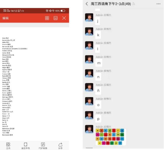 第一步当然是学习字母表,Adrian很耐心地教大家如何发音。在学到弹舌音r的时候,大家纷纷表示:太难了,舌头都要打结了!因为我们中国人在讲话的时候从来没有发过弹舌音,这难倒了一片员工。Adrián告诉大家万事开头难,并教给大家一个小技巧:在嘴里发tra,tra的音,并且要多加练习,熟能生巧哦!毕竟,西班牙语可不是一天练成的。带着Adrián给大家的发音技巧和鼓励,同学们对初学西语充满信心和决心。