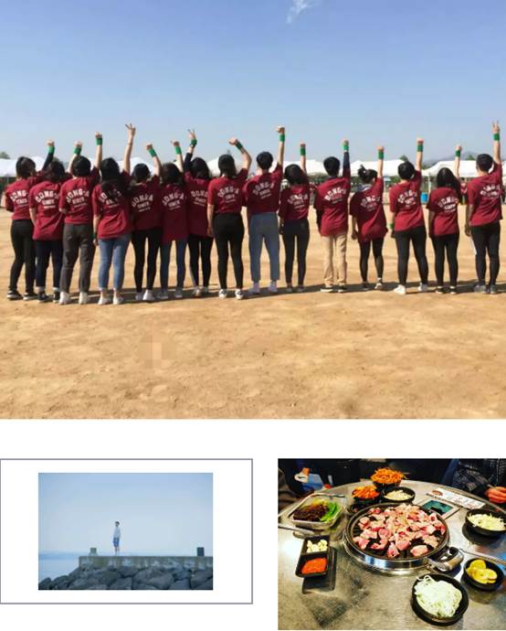 运动会马上就要来了,公司给每个韩语班的同学都发了一套衣服,运动会那天要穿过来。但万万没想到,明明出门看着艳阳高照的好天气,一到中午居然那么冷,大风狠狠的刮着,边吃饭边被吹成了泪人,所以釜山的心思你别猜。运动会有很多项目:猜对错,人浪大战,pk舞蹈,接力跑和拔河。初级一班的我们猜对错的时候太吃亏了,因为韩语只会一点点呢,问答全用的韩语,我们只能跟着中级的学霸跑着了。我觉得最让我兴奋的就是拔河,我们初级一班的要和其他中级和高级班的pk,然而我们只有四个男生,还都是瘦子。看到对面有个重量级选手,男生也多,我们心都凉了一半。号声一响,我死死的抓住了绳子,对面的力气很大,我们瞬间被一下拉了过去。可是大家都没服输,硬是靠着毅力把绳子拉了回来。最后赢得了胜利,赢得那一刻,仿佛是赢了全世界,大家互相拍掌庆贺!