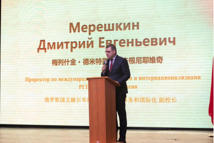 作为联合主办方的俄罗斯国立赫尔岑师范大学以副董事长梅列什金·德米特里·叶夫根尼耶维奇先生为代表参会并致辞。他说道,中俄合作在国家和社会层面的各个领域都取得了积极的成效,两国领导人在最近的新闻讲话中也特别强调了文化联系的重要性以及进一步发展科学和教育合作的必要性,希望通过此次论坛的胜利召开进一步扩大中俄高校之间的相互对话和学术交流。
