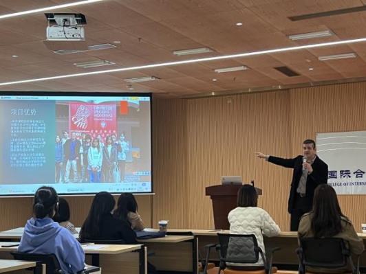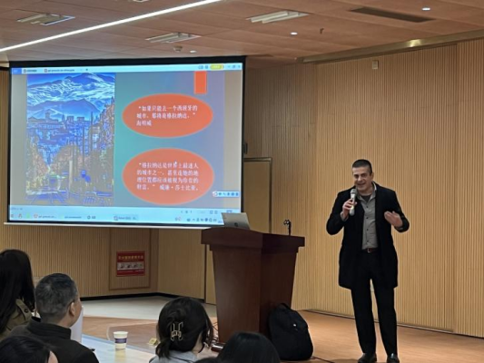 会议开始,Rafael教授引入主题-西班牙格拉纳达这座城市的人文环境和历史,然后向员工们展示了该校的语言课程和实习项目,激起了西班牙语系员工极大的学习兴趣,员工们积极纷纷积极向教授提问,Rafael教授耐心地一一解答了员工的疑问。