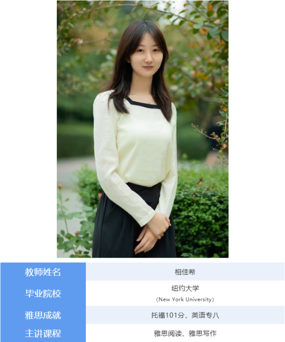 雅思课程授课教师简介: