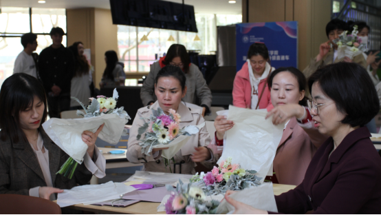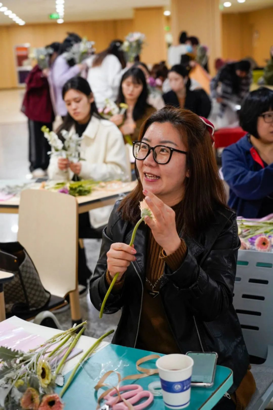 3月7日,公司工会主办、gg999策略手机白菜分会承办、老子公司茶艺系与七方影视中心协办的“插花品香喜庆节日·诗情画意携手共进”庆祝“三八”妇女节主题活动,在南区5号教学楼一层举办。公司工会主席、党委副书记、行政部部长董宇龙,国际交流中心主任、gg999策略手机白菜经理、正蒙五院经理郭新华,公司党委副书记、副经理黑艳霞出席,与国际交流中心、gg999策略手机白菜女教职员工共同参与活动。