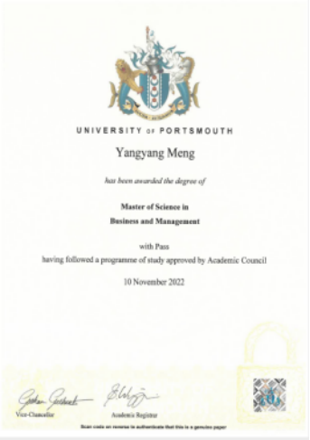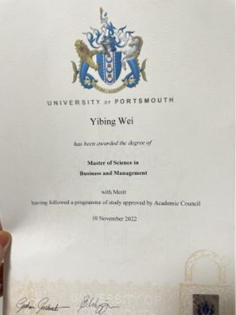 英国朴次茅斯大学毕业证: