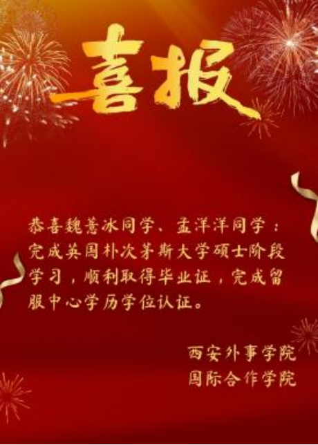 恭喜2018级中英班魏薏冰同学(本科)、孟洋洋同学(专科)等已顺利完成教育部留学服务中心学历学位认证。