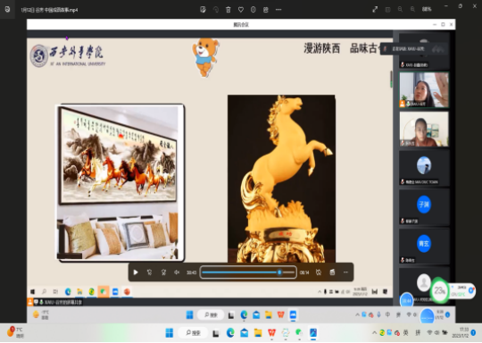 早上八点被闹钟唤醒,回想起来考试周之后很少能这么早起床,老师昨天告知我们八点半进入会。由于担心出现失误,老师和助教提前十五分钟就进入课堂调试设备了。在需要和老师配合的环节,我的任务其实很简单:在课间播放宣传视频以及和员工互动。我是第一次参加汉语桥的工作,虽然我们并不是主角,但是在老师的趣味课堂和员工的配合下,这短短的四十五分钟仍有许多意犹未尽的体验。在上课前十分钟老师将课件发给我以免出现突发情况,需要我第一时间辅助老师的后续讲课,这无疑是一个艰巨的任务,根据老师的进度找到对应的PPT,和汉语桥的同学们进行实时共享。