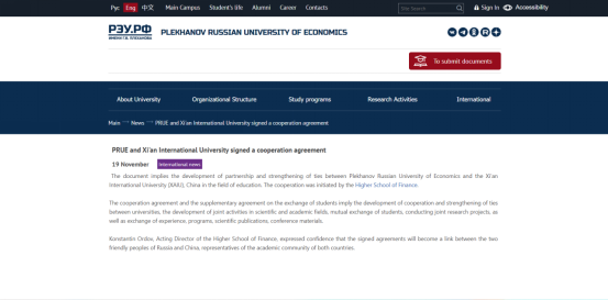 俄罗斯普列汉诺夫经济大学对本次签约的新闻稿链接: