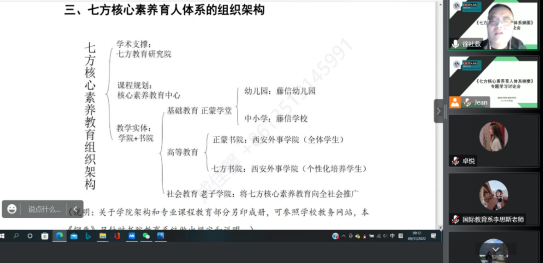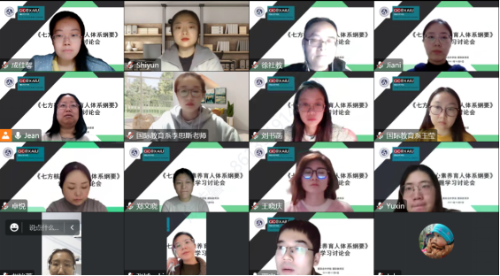 为进一步深入学习并贯彻落实公司《七方核心素养育人体系纲要(试行)》文件。11月9日下午,国际教育系全体教师召开了主题为“《七方核心素养育人体系纲要》专题学习讨论会”。本次会议由国际教育系副主任张进老师主持,徐社教主任带领各位老师研读和分析文件内容。