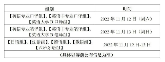 2) 【英语非专业口译组】,2022年11月12日共安排五场,具体如下: