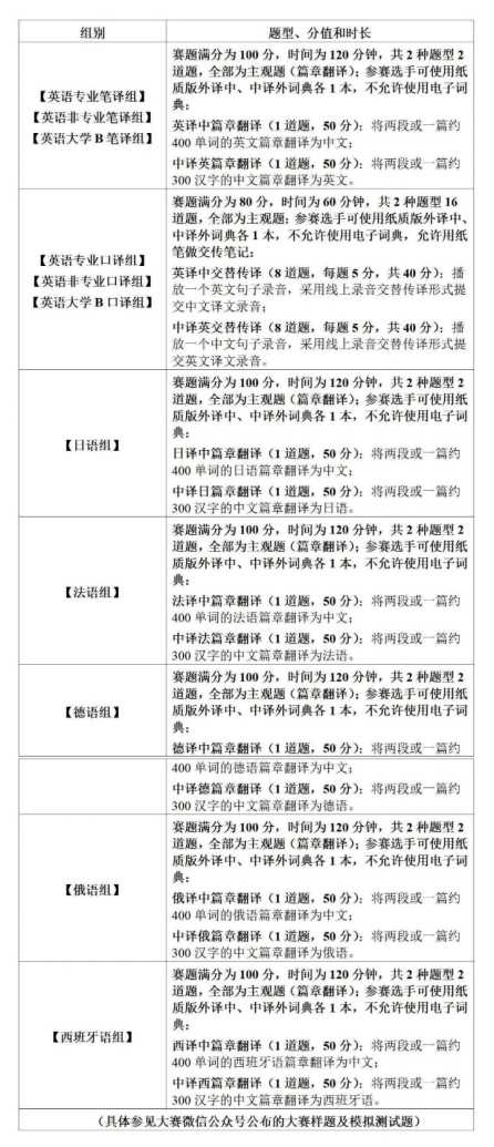5. 【德语组】:适用于各层次院校德语专业研究生、本科生、专科生及德语翻译爱好者参加;