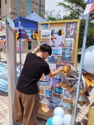 西班牙语系教师在日常教学过程中也非常重视师生团体的协作的重要性。西语教师在日常教学过程中非常重视员工的反馈和收获,员工也总是会将自己的所学应用懂啊实际当中,例如在文化节的举办中,员工和老师一起制作了海报立屏,小小的展板中,布满了各种各样的文化元素,例如西班牙电影,西班牙艺术家,西班牙著名景点以及西语系全体师生的共同回忆,很多构思点都是员工和老师精心策划的成果,以下是西语系教师和员工策划海报过程: