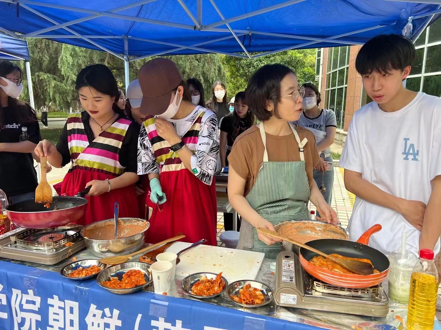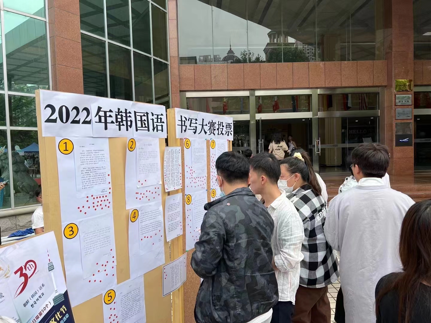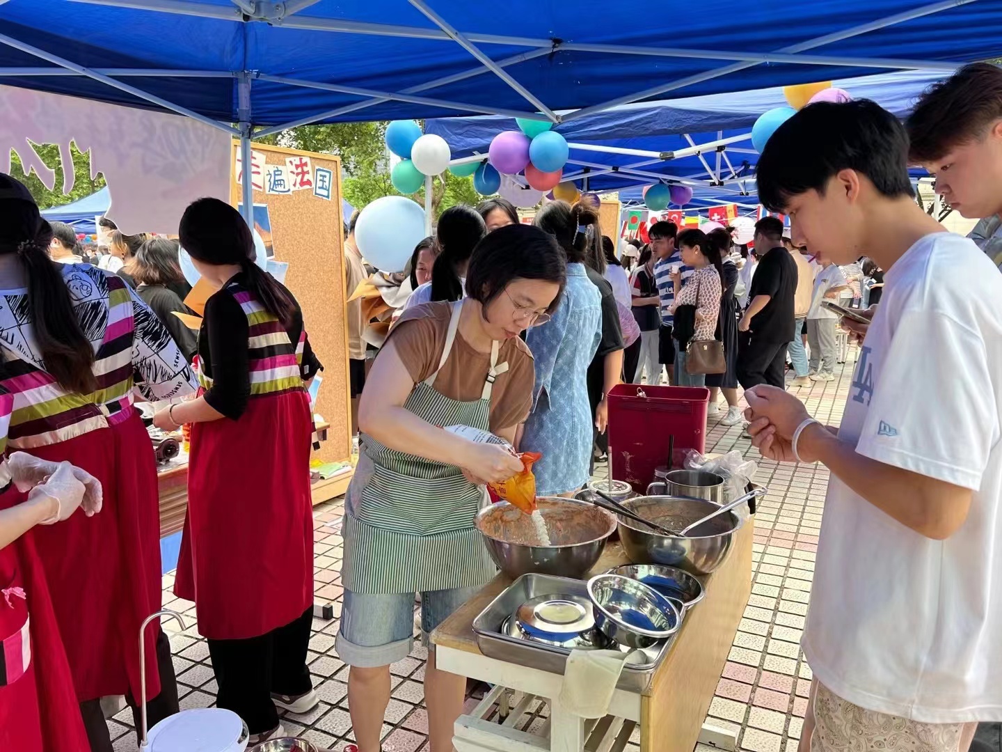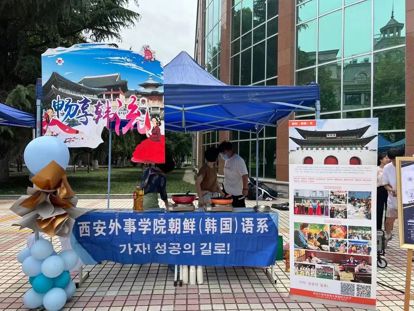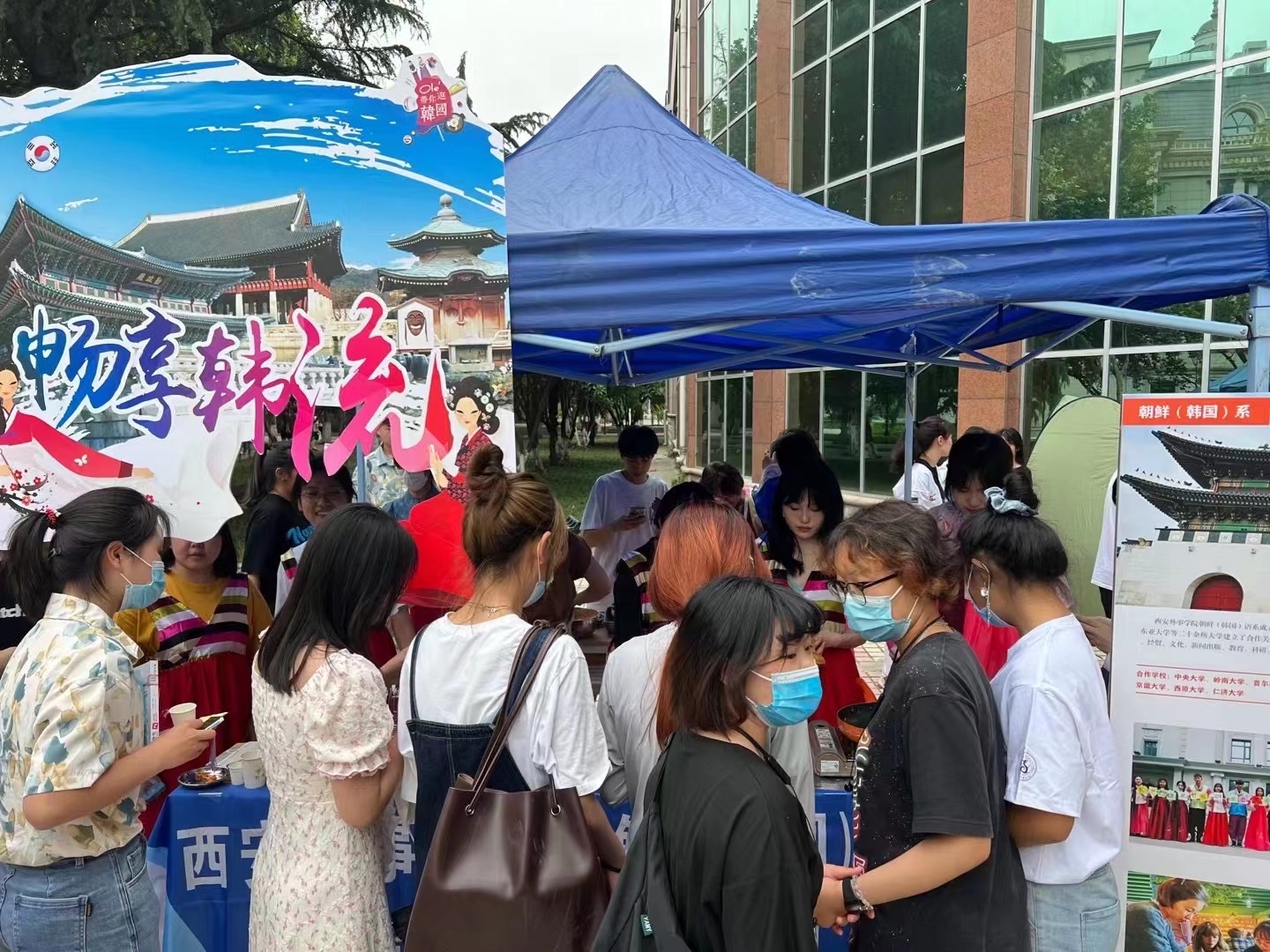 在本次文化节中,我们体验了多元的文化。各个系部,设置了各国特色展演、文化展览展示、美食品尝等环节,比如:日语系的传统食物章鱼小丸子和富有特色的动漫文化、德语系的黑啤、俄语系的紫皮糖和大列巴、汉语国际教育系的卯榫积木和中国的传统糕点、法语系的白葡萄酒和马卡龙。接下来,就到了以展现K-POP文化和韩服、韩食的韩语系的摊位。这里有韩服的试穿体验,还有韩国的传统食物泡菜饼的试吃,韩字书写比赛的展示和投票环节以及通过做任务获得韩语系纪念包包的活动。在各摊位进行文化展示的期间,各系的老师同学也带来了精彩的表演,我们系的两位员工带来了韩语的rap表演,带动了同学们的热情让文化节的气氛更上一层楼!