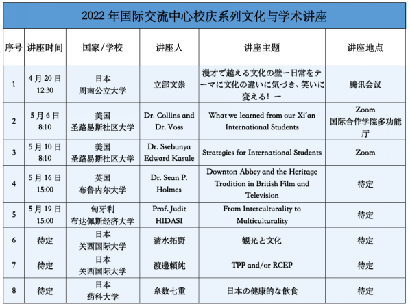 系列讲座目前已经开设了两场,分别为日本周南公立大学立部文崇教授讲授的漫才主题文化讲座《漫才で越える文化の壁ー日常をテーマに文化の違いに気づき、笑いに変える!ー》与美国圣路易斯社区大学Collins 教授与Voss教授共同开设的师生互动交谈型文化交流讲座“What we learned from our Xi’an International Students”。参加员工纷纷表示讲座内容十分有趣,收获了很多跨文化知识,丰富了自己的课业生活。