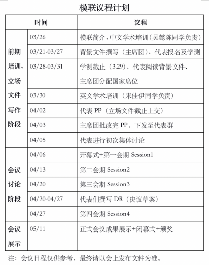 一起来看看此次模联大会的计划议程吧!