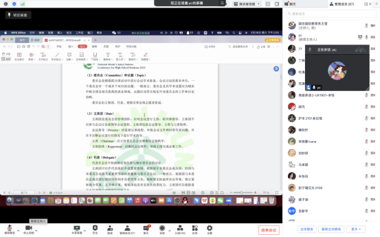就在刚刚过去的周六下午,本届模联大会的第一次线上预热活动已经顺利完成,活动吸引了60多名同学在线聆听。本次预热活动通过腾讯会议的形式,为同学们介绍了了模联大会的概况和基本流程,进行了中文学术培训,从基本概念讲起,介绍了包括代表权力和义务、会前准备、文件撰写、会议流程及发言规则等方面的内容,帮助同学们提前了解了本次模联大会的议程安排,以及大家在会前、会中需要完成的各项任务。