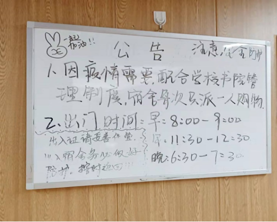 面对本次疫情,公司从源头上解决问题,让同学们自觉呆在寝室,避免不必要的问题出现,并且错峰取餐,避免特殊时期人流过多的情况。截至目前,公司以楼层为单位的防疫工作有条不紊的进行着,并取得了显著的效果。