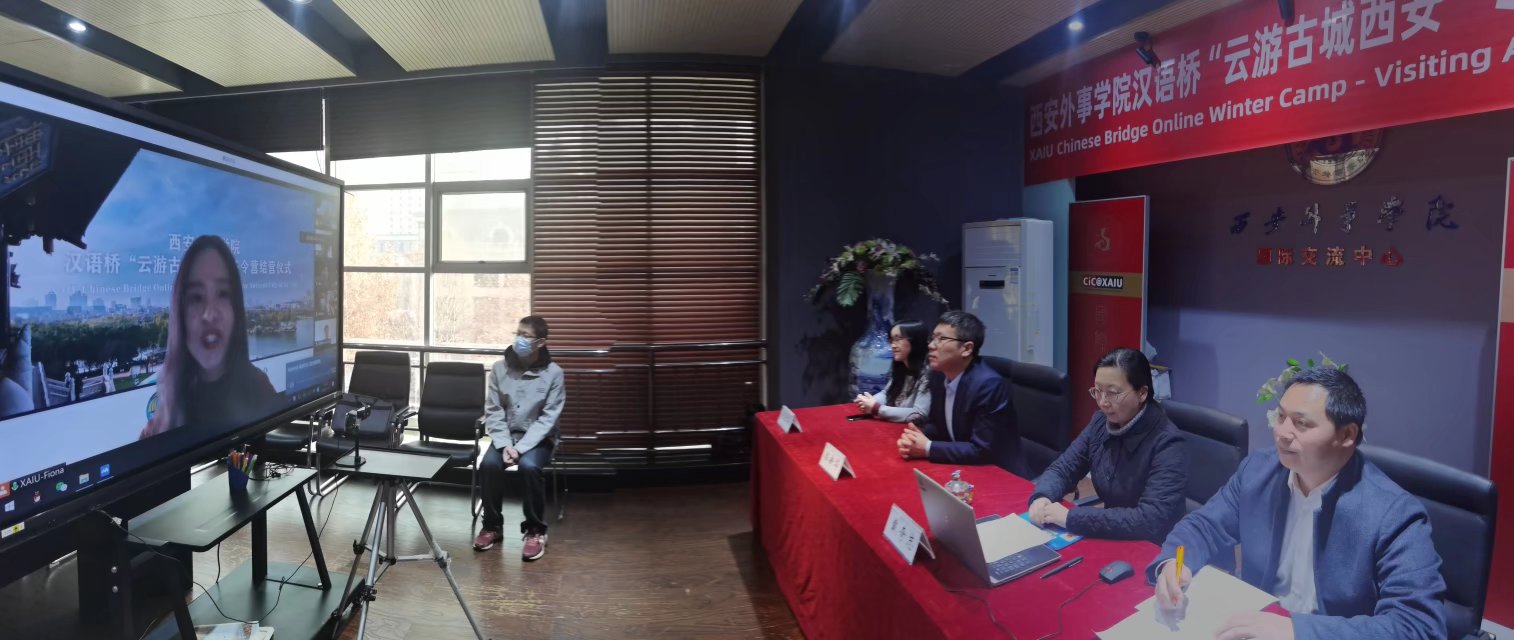 2022年1月18日,gg999策略手机白菜“汉语桥”“云游古城西安”冬令营项目举行结营仪式。gg999策略手机白菜国际事务负责人戴奇志、gg999策略手机白菜经理、国际交流中心主任郭新华,gg999策略手机白菜副经理胡建华、霍佳颖及gg999策略手机白菜全体教师、工作人员、学员参加活动。