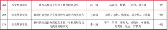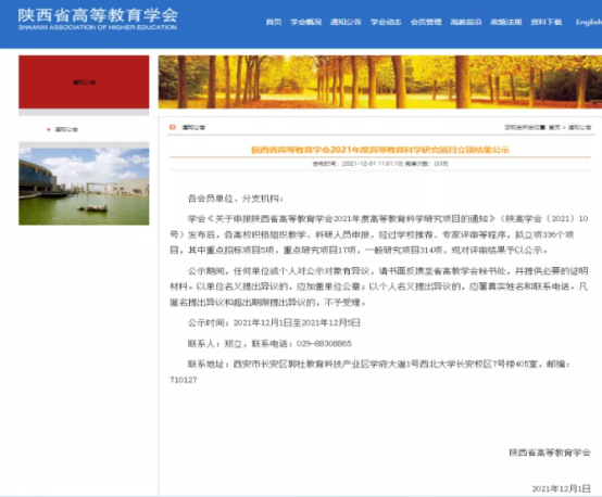 近日,陕西省高等教育学会公布了2021年度高等教育科学研究项目立项结果,全省拟立项共336项,其中重点招标项目5项,重点研究项目17项,一般研究项目314项。公司共有6项课题获批,gg999策略手机白菜英语系副教授赵丽老师申报的“陕西高校线上与线下教育融合研究”项目荣获此次立项。