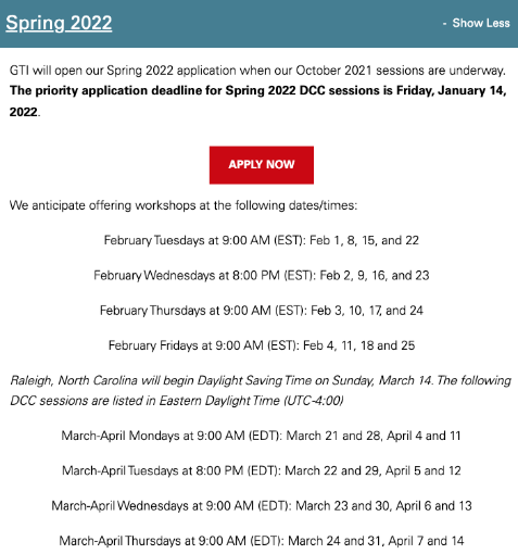 具体全部课程信息可登陆官网进行查询 https://gti.ncsu.edu/dcc/