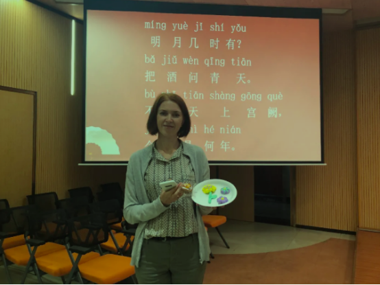 “明月几时有,把酒问青天”。在活动的最后大家一起欣赏歌曲《水调歌头》,并由主持人郭博媛和毕诗睿同学带领大家齐声合唱。