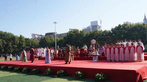 活动中,校领导师长寄语新生“化鱼成龙”,西安外事古乐团的文艺演让员工再度感受通识魅力,厚植优秀传统文化。同时,喜迎十四运,黄藤董事长创作的《摇一天卫星把你迎》精彩亮相,深受师生欢迎。