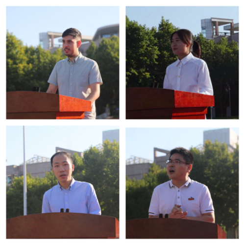 来自西班牙的安明杰同学代表职工向老师和同学们致以最真挚的问候和谢意,他感谢中国师生的热情帮助,更感谢中国师生与职工共享中国文化。他已经在外事公司学习了三年,这里给他留下了美好的回忆。他相信未来一定能和大家一同完成“化鱼成龙”的使命。