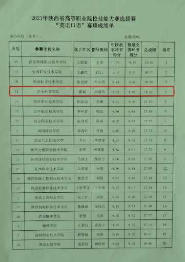 本次大赛由赵丽春老师担任带队和指导老师,公司应用英语专业1903班翟毅同学入围本次比赛并成功晋级。