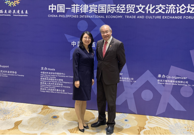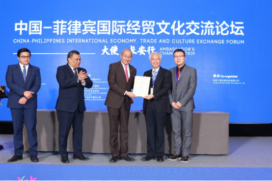 12月10日,在千年古都、古丝路起点西安,“丝路友好·共建未来”——大使·长安行暨中国-菲律宾国际经贸文化交流论坛成功举行。此次论坛由中国人民对外友好协会支持,中国对外友好合作服务中心、菲律宾共和国驻华大使馆、陕西省人民对外友好协会、西安市人民政府外事办公室共同主办。活动期间,菲律宾驻华大使何塞·圣地亚哥·罗马纳代表菲律宾共和国驻华大使馆为西安外事学院颁发感谢状,以感谢学校为推动“中菲”关系所做出的突出贡献。西安外事学院董事长、校长黄藤,国际事务负责人戴奇志及国际合作学院负责同志代表西安外事学院应邀出席论坛。