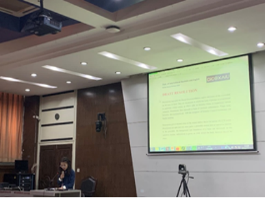 紧接着,刘书菡老师简单概括了撰写决议草案的方法。刘书菡老师指出,一份决议草案包括两个部分:序言性条款和行动性条款。序言性条款是以回顾过去的决议、宣言和原则为主,而行动性条款则是具体的措施。