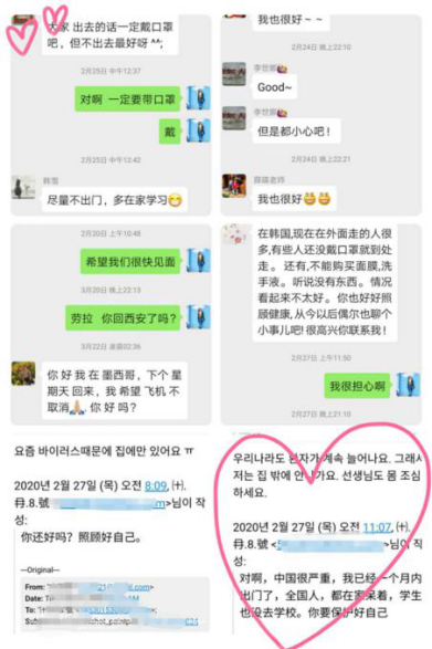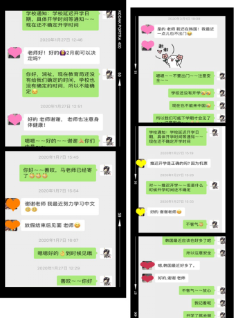 假期回国的职工因疫情本学期无法再回校;已安排来校的交换生也不得不取消了他们交换生计划。但在疫情期间,很多员工都通过微信、邮件联系老师,送上一份关心与问候。作为职工教育系的老师,在疫情期间,深刻感受到了教育无国界。已毕业的、未毕业的员工都发来问候,在这样寒冷的冬日里,让老师们都沐浴在春日的暖阳下。