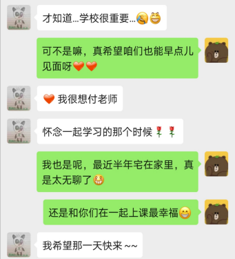 疫情怎能够阻断老师们与远在他国的员工之间的联系?通过各种媒介老师们及时解答员工的各种汉语学习难题。遍布在世界各地的员工都有一个共同的心愿:愿疫情早日过去,重回公司学习汉语,体验中国优秀传统文化。为此,我们的员工和老师们一直在努力,员工也纷纷表示特别怀念一起上课日子。