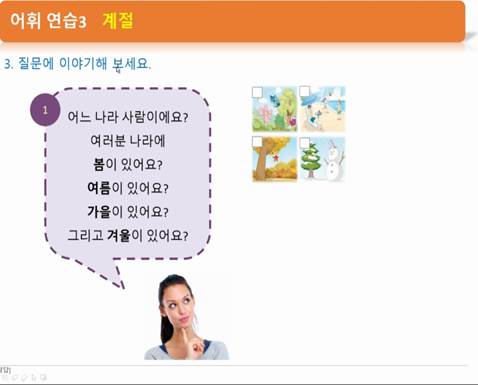 虽然大家不能和从前那样近距离的接触,但是直播平台的视频和语音功能可以随时为我们提供沟通的桥梁。在这段对话中老师抽中了两位同学让他们进行韩语对话,我们的同学韩语水平真棒,老师都忍不住夸他们了。接下来学习用韩语表达四季与天气,金老师一边播放PPT,一边解释,一遍又一遍地带领大家复习内容。最后,金老师还给我们分享他最喜欢的韩国电影,让大家深入了解韩国文化。