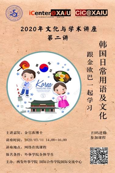 2020年春节,注定是一个不平常的春节,这个原本应该喜庆热闹、万家团圆的新春佳节,因为新型冠状病毒感染的肺炎的出现,让原本期望开学的我们现在被迫在家进行网络直播教学上课,与面授课堂相比,网络教学直播上课对于我们来说难免是有一些枯燥的,但是……老师突然告诉我一个깜짝(惊喜),那就是在本周三3月11号14:00线上举办的韩语角文化讲座.