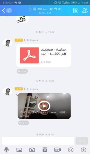 法语系外教Gregory由于疫情无法回到中国进行授课,但为了不耽误员工上课,保证做到“停课不停学”,克服了与国内的时差、网络平台上课不稳定等困难,给所代班级组建了QQ群。每次上课都会通过邮件等方式提前发给员工各种资料,上课使用QQ课堂进行直播,保证授课准时顺利进行;上课时与员工们积极互动、讨论问题、在线答疑;课后布置作业,巩固学习内容,员工反映良好。