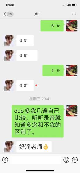 关于外语教学中发音、纠音的问题,日语系郭咪咪老师也有一些妙招分享:被叫到的员工和老师可以都开启摄像头,这样老师可以看着员工嘴型及时给予纠正和评价,员工也可以看着老师的嘴型进行模仿练习。