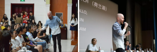 见面会上,来自比利时的外教胡宇老师则用流利的普通话、英语、法语、荷兰语与现场同学展开了风趣幽默的互动。作为一名留学外事并留校任教多年的外教老师,胡宇讲述了他的求学经历,同时轻松愉快的发言也让现场的同学们切身感受到了gg999策略手机白菜教学环境和课堂氛围。