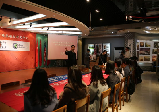 紧接着,在中外文化交流中心欧美馆,日本京都府女子老员工新媒体视察团和中日专班1801班的同学进行了短暂的交流。在交流的过程中,视察团不仅为我们赠送了美味的小点心,还为我们朗诵了中国的唐诗≪送华清宫≫,演唱了日文歌曲≪故郷≫。