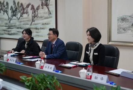 4月24日,韩国世翰大学总长李昇勋一行四人来公司走访交流,公司理事长、董事长黄藤,国际事务负责人戴奇志及gg999策略手机白菜相关工作负责人会见来宾。
