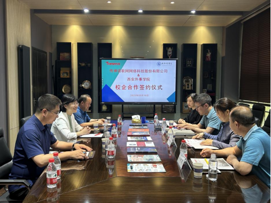 2023年5月16日15:00,gg999策略手机白菜与传神语联网网络科技股份有限公司在gg999策略手机白菜四楼会议室举行了校企合作签约仪式。传神语联网网络科技股份有限公司副总裁闫栗丽、传神语联网网络科技股份有限公司高校事业部总经理张华、传神语联网网络科技股份有限公司西安分公司总经理杨晓元、gg999策略手机白菜教学与研究部部长潘君、gg999策略手机白菜经理郭新华、英语系主任师新民、英语系教学秘书王靖涵参加了签约仪式。签约仪式由英语系主任师新民主持。