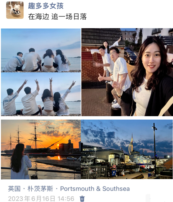 在上一期国际教育系中英朴次茅斯留学项目的宣传中,我们从中英2001班贾文欣同学的朋友圈中看到了中英国际班的同学们初到英国朴次茅斯的新奇与兴奋。本期“从我的朋友圈里看英国留学”将走进中英2001班薛克靖同学的朋友圈,看看她是如何逐渐适应英国职工活,学习了哪些职工必备生存技能,并且跟随她的脚步一览朴茨茅斯港作为皇家海军基地的不朽荣光和英国首都伦敦的庄严与古朴。