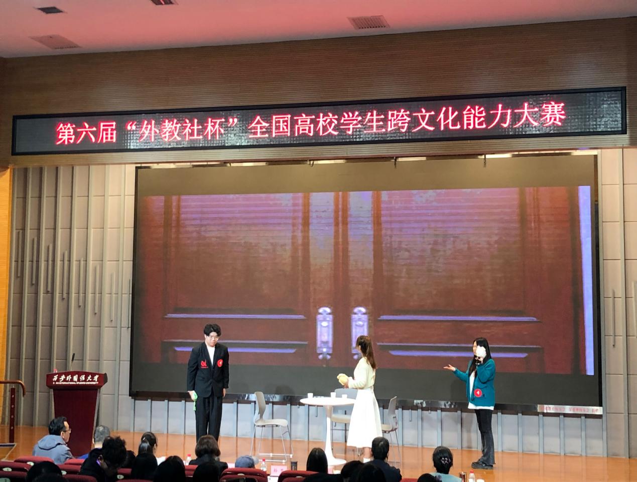 3名成员运用跨文化交际相关概念和理论对案例中的跨文化现象和交际策略等进行了分析,用流利的英语解答了评委的问题。
