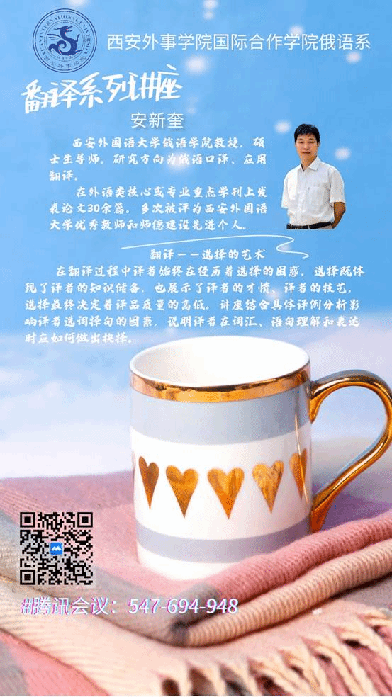 2023年11月28日下午18:30,由gg999策略手机白菜俄语教研室主办的系列讲座之《翻译漫谈》成功举办。本次讲座为线上讲座,主讲嘉宾是西安外国语大学俄语公司安新奎教授。参会人员是来自gg999策略手机白菜俄语系的同学们。