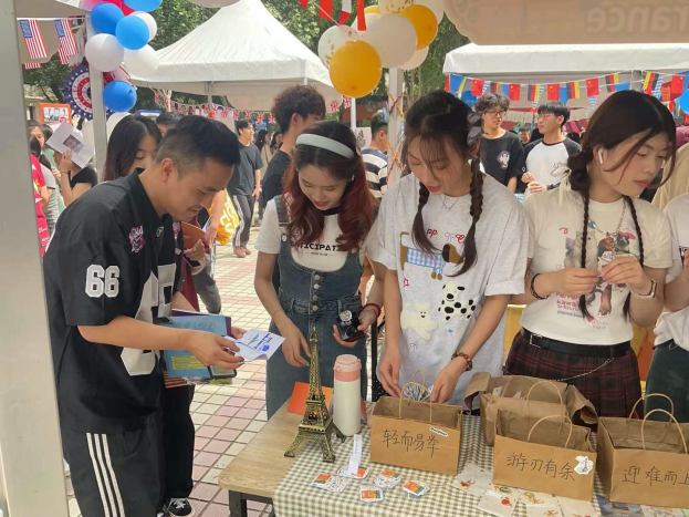 法语展区的活动也吸引了很多国际友人,包括国际职工,各国外教。有些穿着中国的汉服,有些正在学习中国的语言,带着对中国文化认可的国际友人,再次向我们展示了不同文化之间也能够非常融洽地相处,更加体现了这次文化节举办的意义所在。